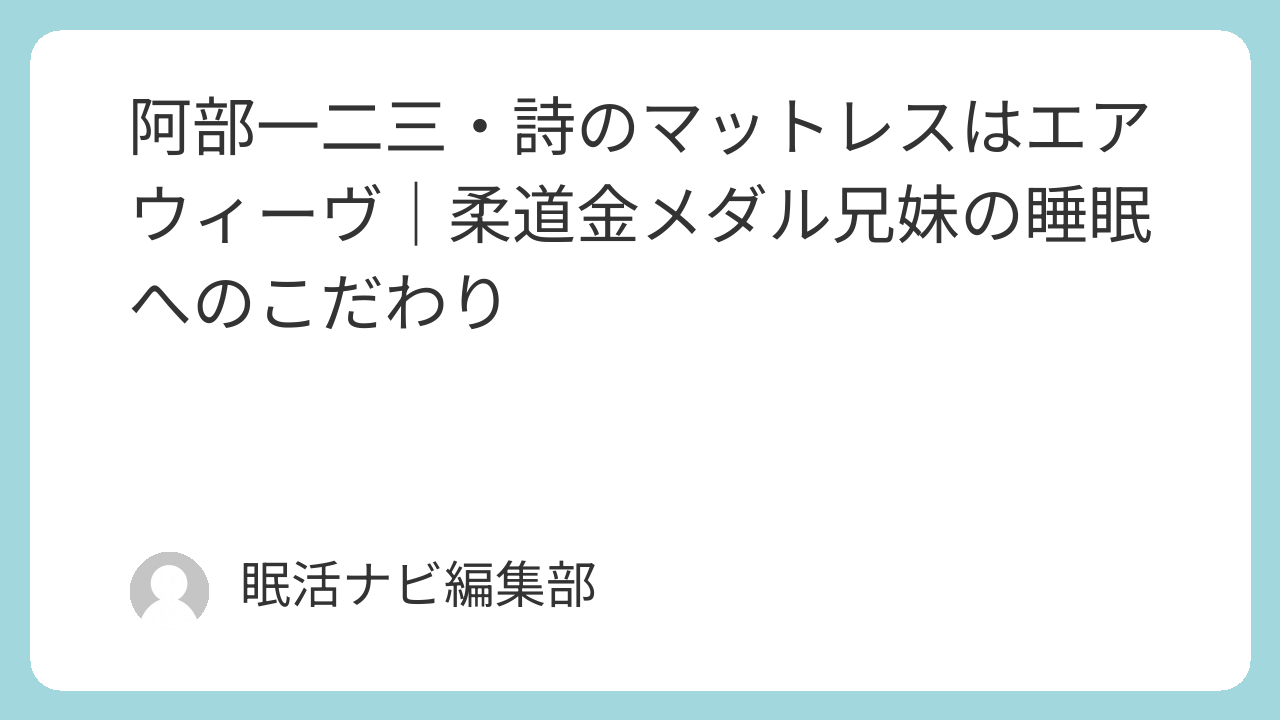 阿部一二三・詩のマットレスはエアウィーヴ|柔道金メダル兄妹の睡眠へのこだわり