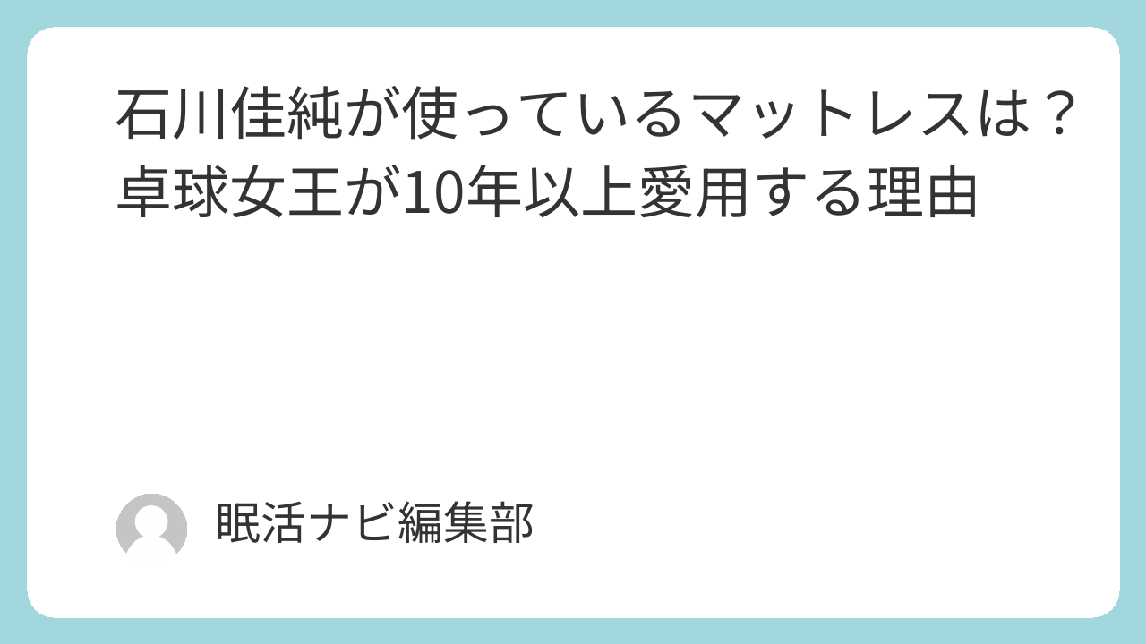 - 石川佳純さんが愛用するマットレスのブランドと使用歴