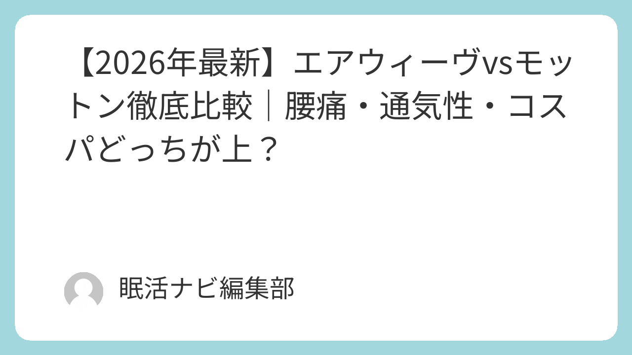 「清潔・通気性・衛生重視 → エアウィーヴ」「コスパ・腰痛・硬さ調整重視 → モットン」です。