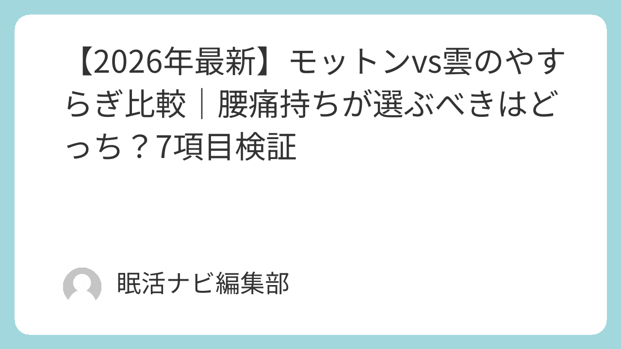 口コミを見ると、モットンは「慣れない硬さだったが翌朝の腰の状態が明らかに違う」、雲のやすらぎは「寝た瞬間に気持ちよくて驚いた」という声が多い傾向です。