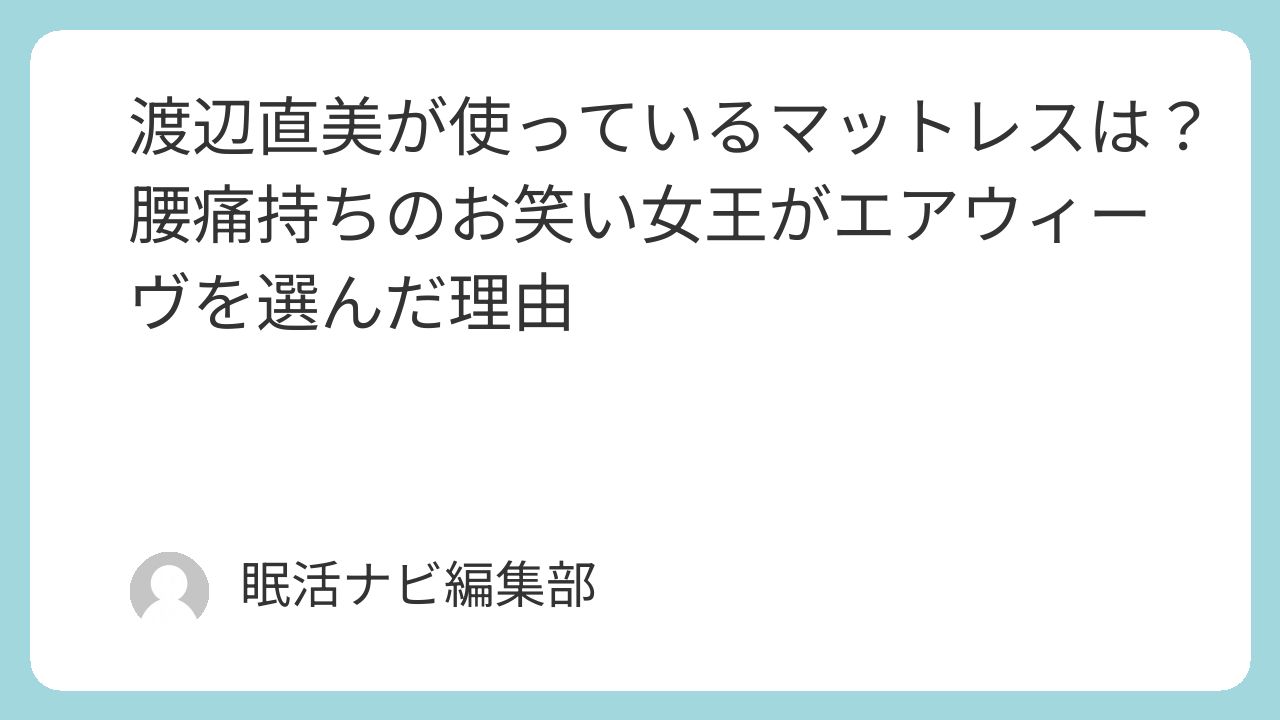 本記事では、渡辺さんがエアウィーヴを選んだ理由(腰痛・ホテル問題)、就寝前のダンス習慣との関係、エアウィーヴの特徴と正直なデメリット、そして「エアウィーヴ以外を検討したい方」への代替商品まで、すべてお伝えします。
